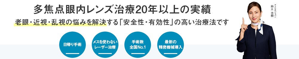 日本で、最も早く(約18年前)から、一貫して多焦点眼内レンズによる水晶体再建手術に携わってきた鈴木高佳理事長の率いる眼科グループだから、安心して治療を受けることができます。